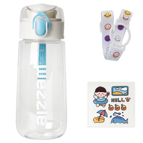 위즐 원터치 물병, 화이트(물병), 랜덤발송(스트랩, 스티커), 430ml, 1개